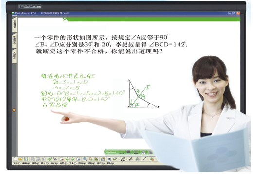 10、抗干擾:無電磁和光干擾問題,使用激光教鞭激光指示在板面時(shí)不會(huì)影響電子白板正常使用,抗光干擾能力強(qiáng),使用時(shí)不受陽光,燈光,紅外等光線影響。